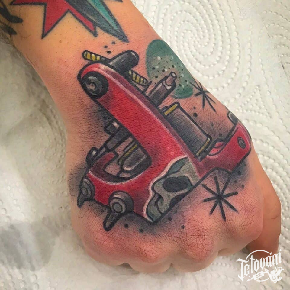 Tetování symbol, strojek na hřbetu ruky