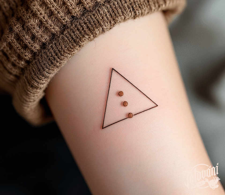 Tetování symbol, tvar, trojúhelník s třemi tečkami na předloktí
