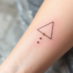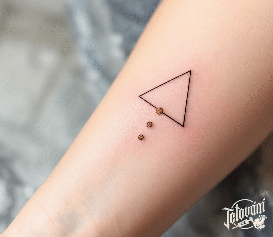 Tetování symbol, tvar trojúhelníku a tři tečky na předloktí