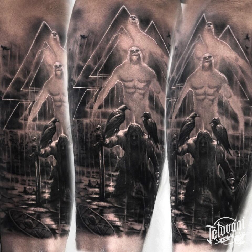 Tetování symbol, Vallhala calling, severská mytologie, vikingové na předloktí