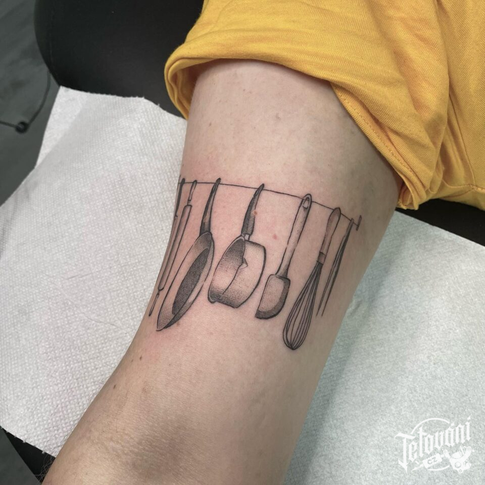 Tetování symbol vaření na bicepsu