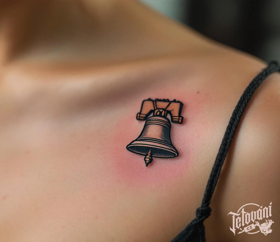 Tetování symbol volnosti a svobody, předmět zvon pod klíční kost