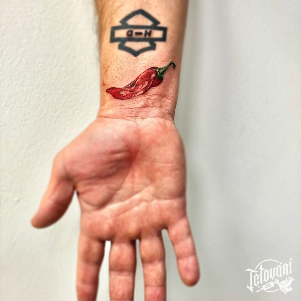 Tetování symbol zdraví chilli paprička na předloktí