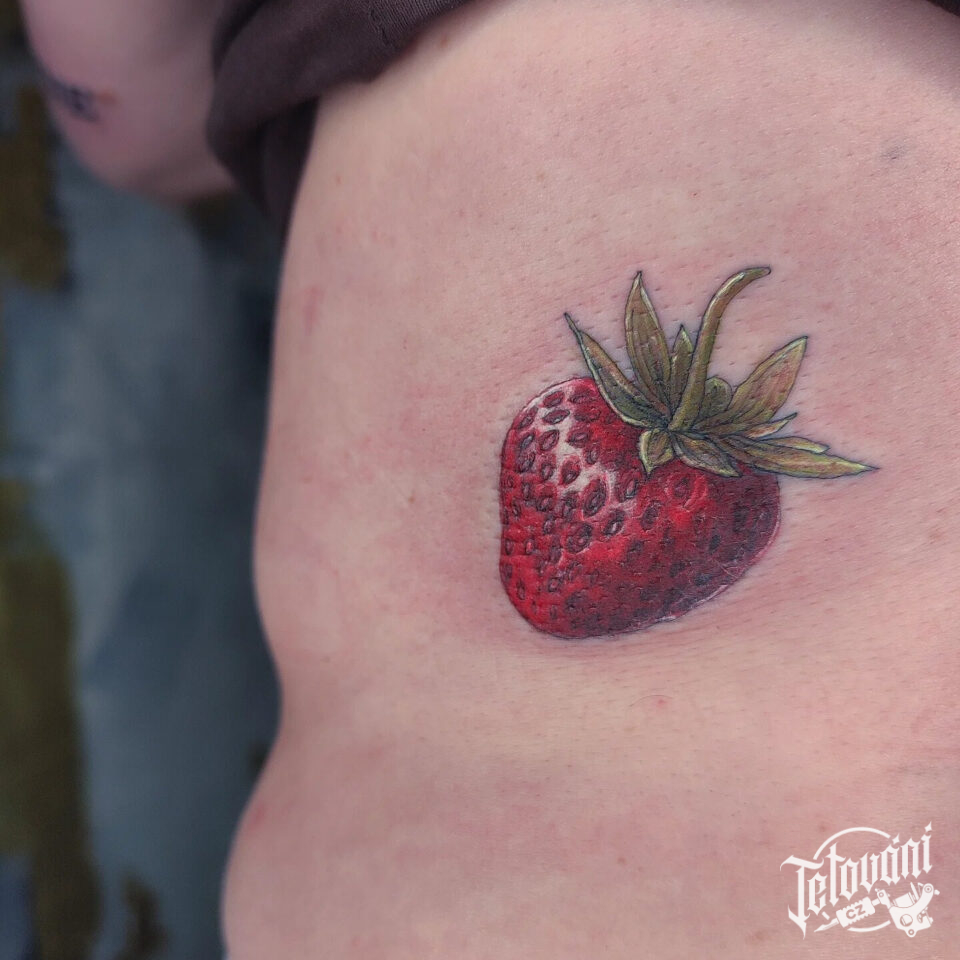 Tetování symbol zdraví jahoda na žebra