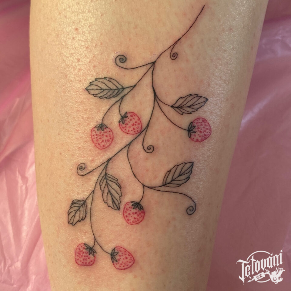 Tetování symbol zdraví, jahody na lýtkuf