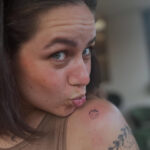 Tetování symbol zdraví, jahůdka na rameni