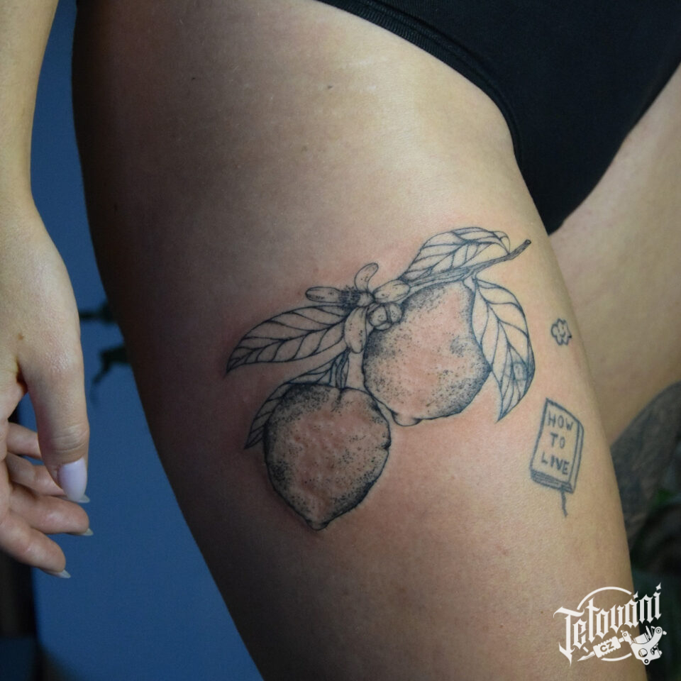 Tetování symbol zdraví na stehně
