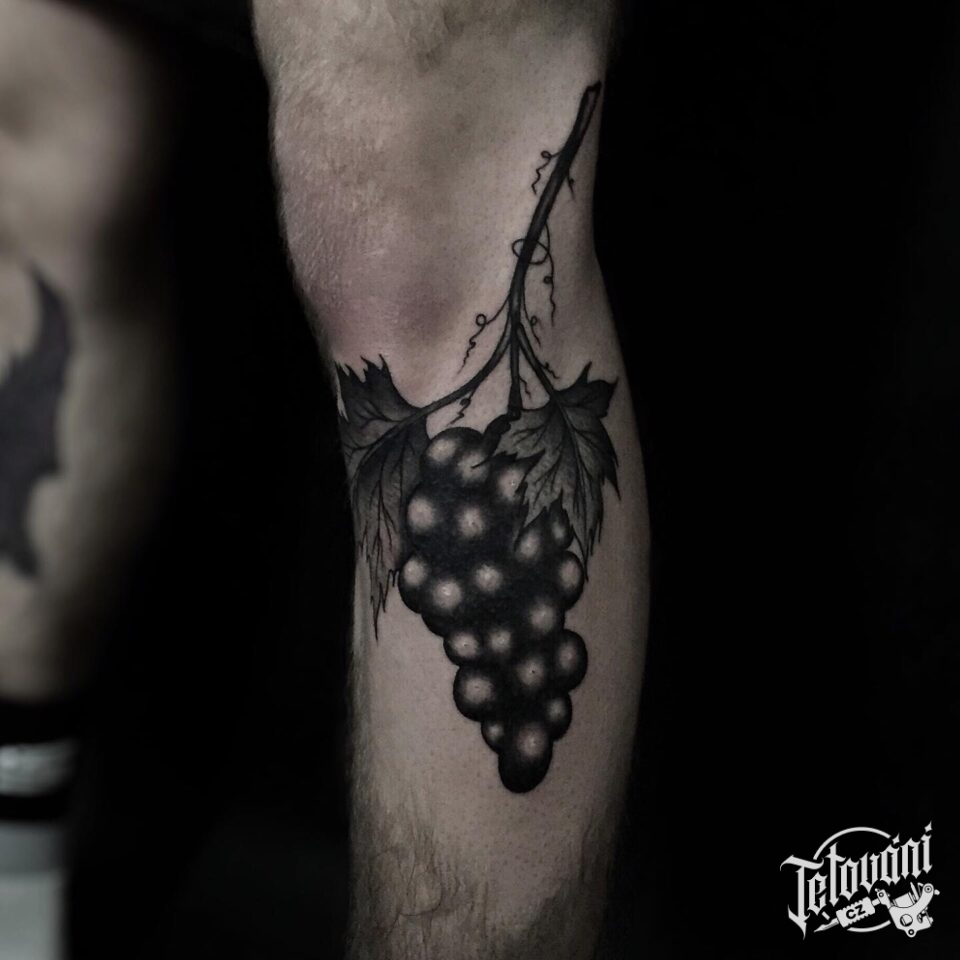 Tetování symbol zdraví ovoce víno, hrozny na holeň