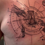 Tetování symbol života, znamení zvěrokruhu beran, ruce, přesýpací hodiny na hrudník