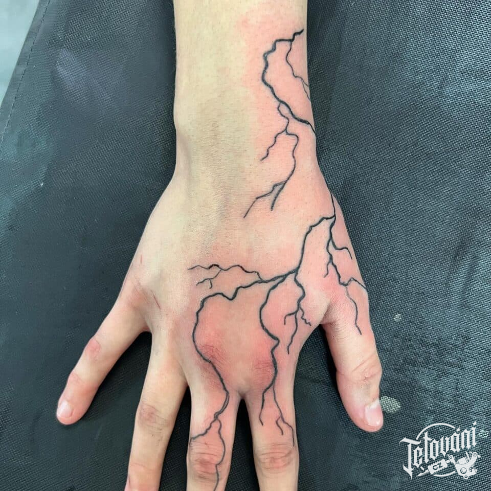 Tetování symboly, blesky na hřbet ruky