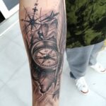 Tetování symboly cestování kompasy na předloktí