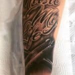 Tetování symboly hudba, nápisy na předloktí