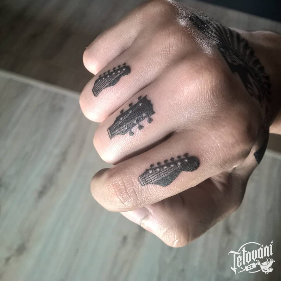 Tetování symboly hudby, nástroje na prstech