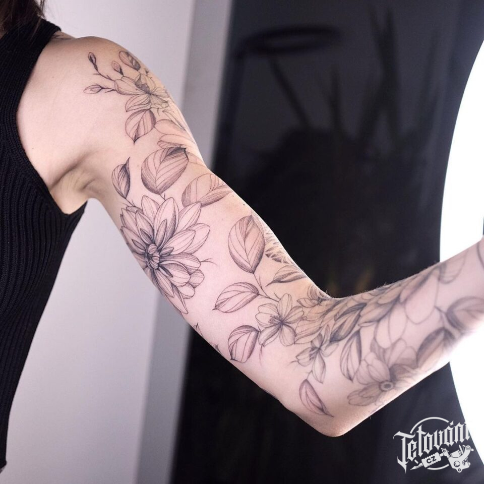 Tetování symboly květiny na rameno a předloktí