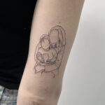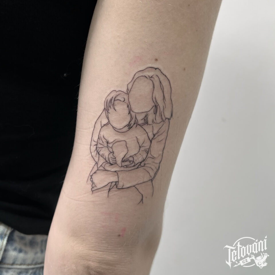 Tetování symboly lásky a rodiny, mateřská láska, syn a matka, rodina, dítě na rameno