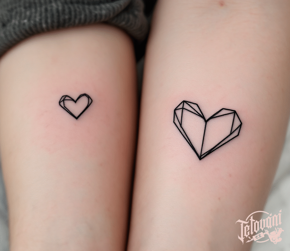Tetování symboly lásky otce a syna, srdce na předloktí