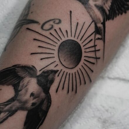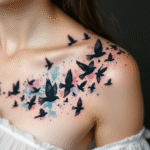Tetování symboly lásky, ptáci, vlaštovky na klíční kosti