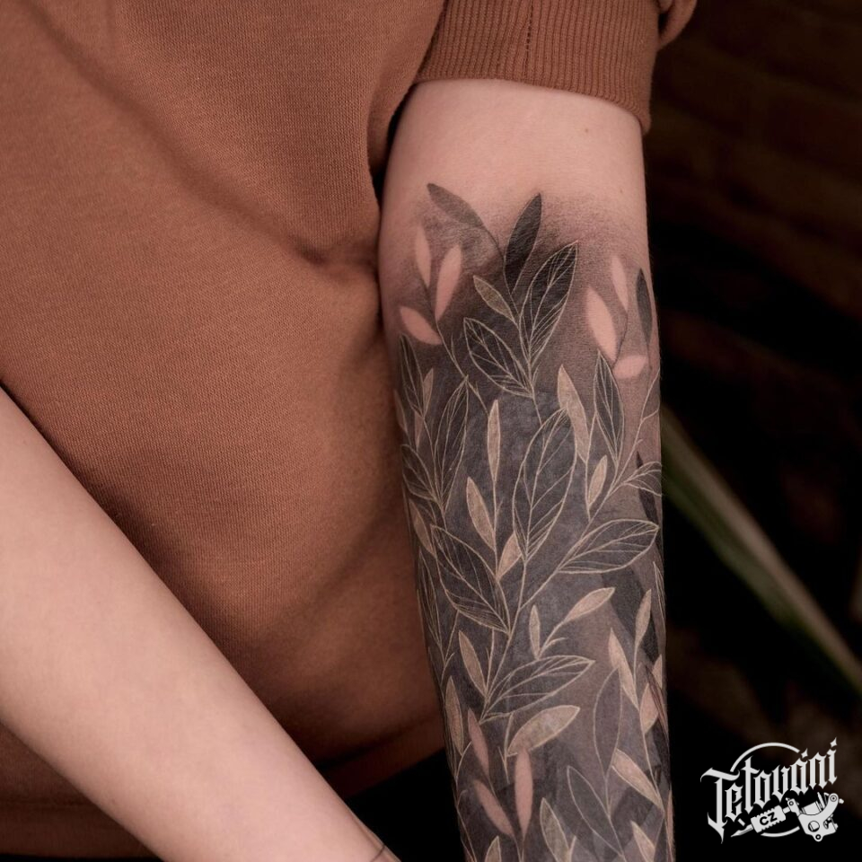 Tetování symboly, luční kvítí na předloktí