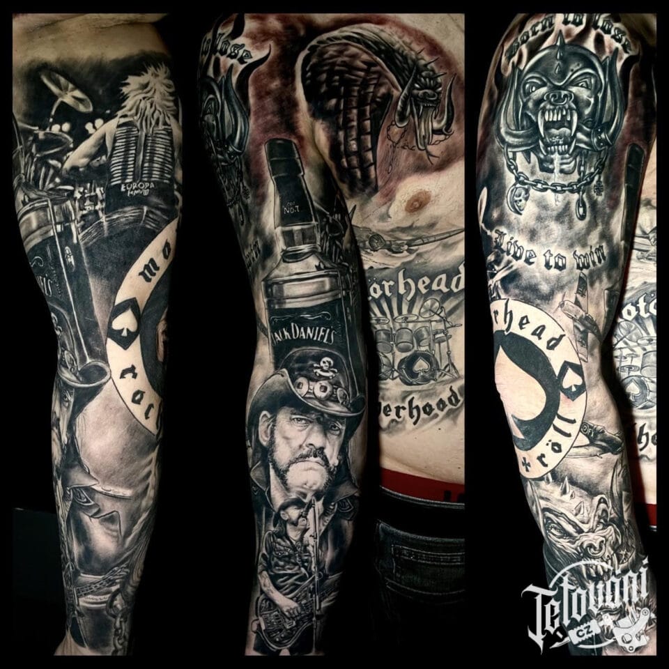 Tetování symboly, motorkáři, osobnosti, portréty, hudba, metal, rukáv