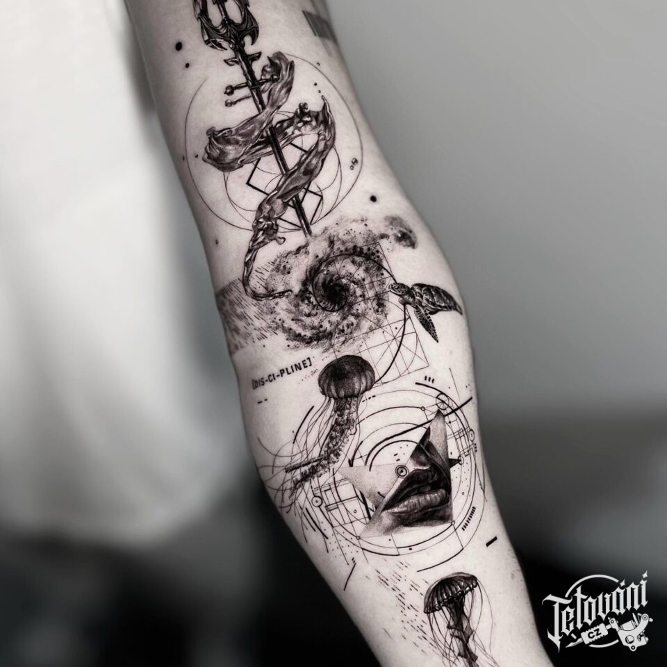 Tetování symboly moře na předloktí