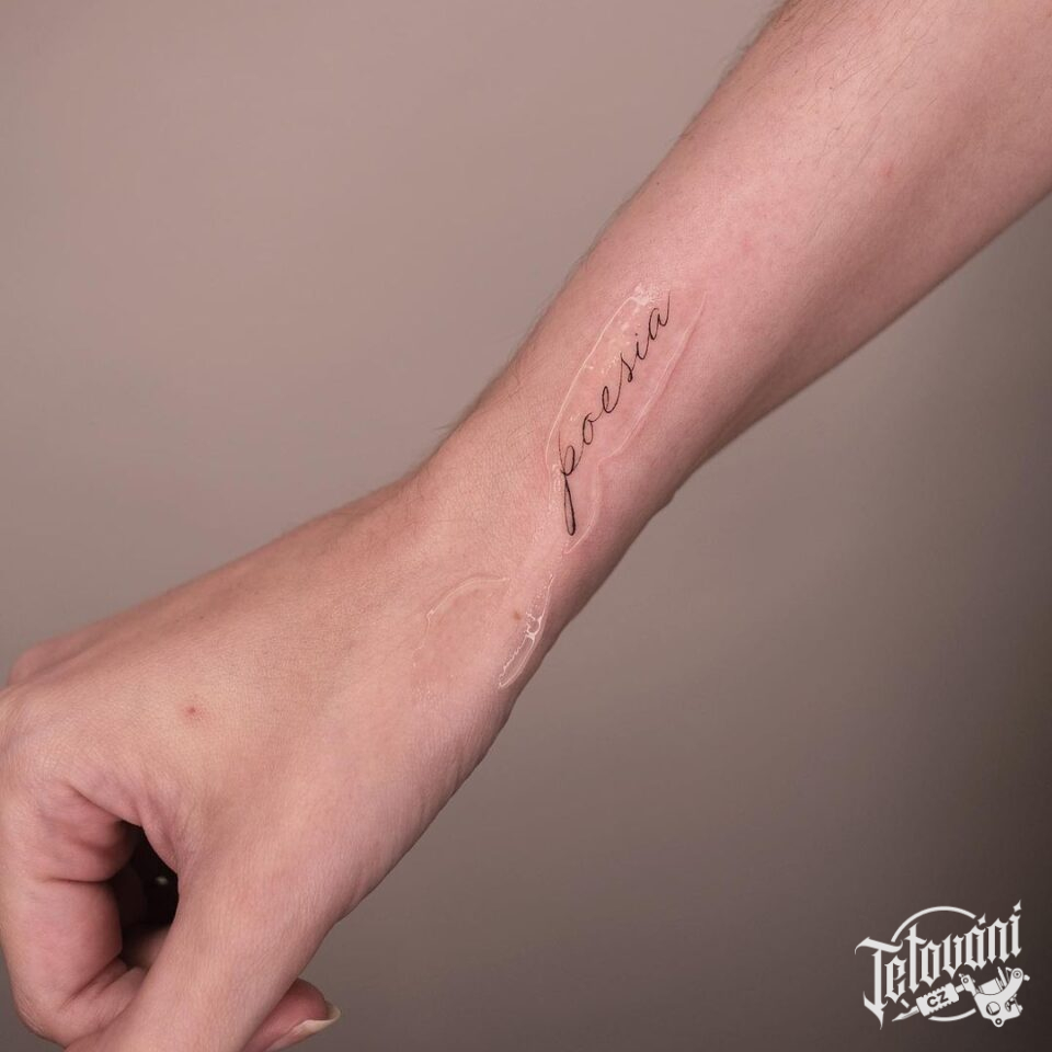 Tetování symboly nápis na zápěstí