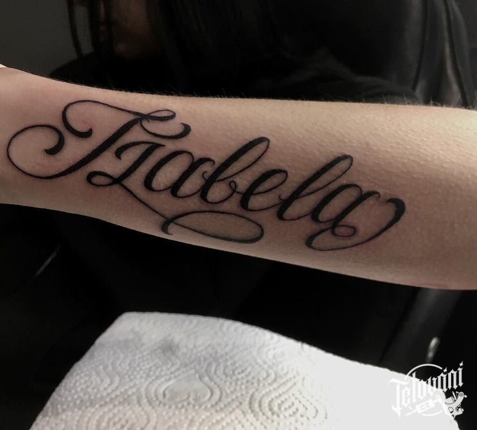 Tetování symboly, nápisy, jméno na předloktí