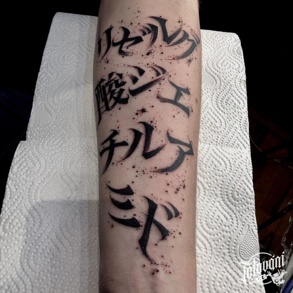 Tetování symboly, písmena, nápisy na předloktí