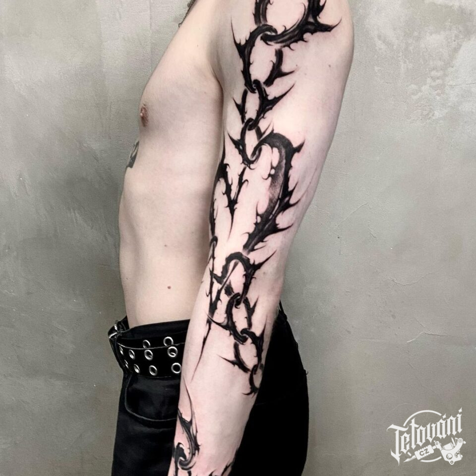 Tetování symboly, řetěz na rameno a předloktí