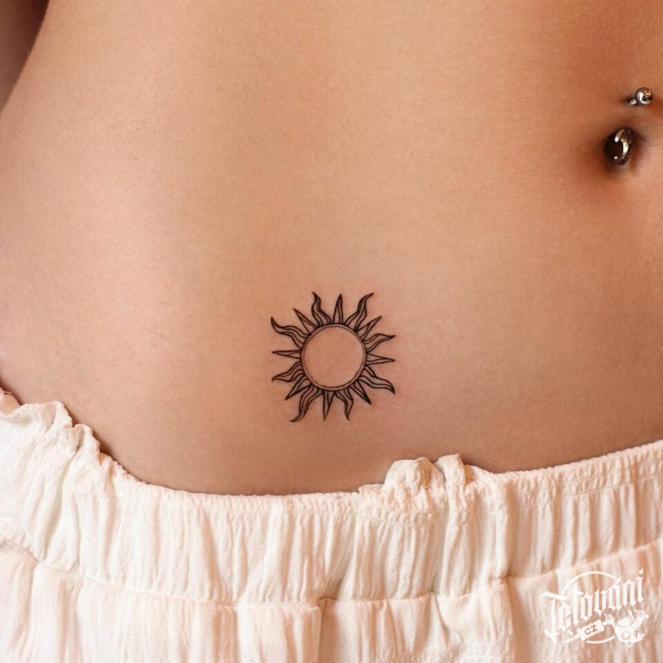 Tetování symboly, slunce na břicho
