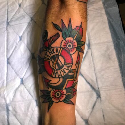 Tetování kotva jako symboly volnosti, a svobody na stehno