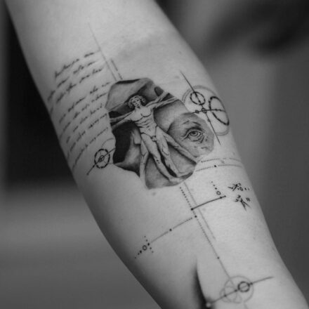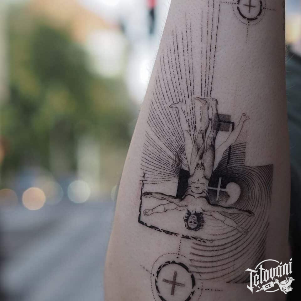 Tetování symboly života, zdraví, tvary, čáry na předloktí