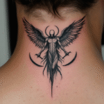 Tetování temný anděl smrti na krku