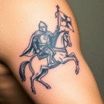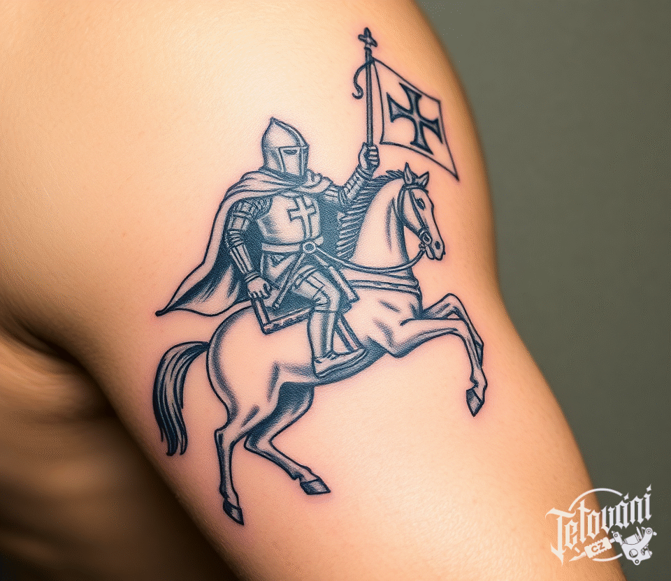 Tetování templář na koni a templářský kříž na rameno