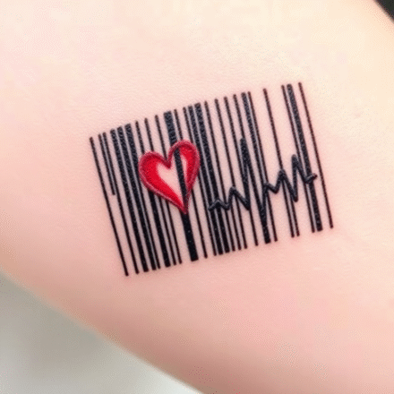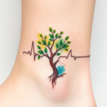 Tetování tep srdce a strom na kotník