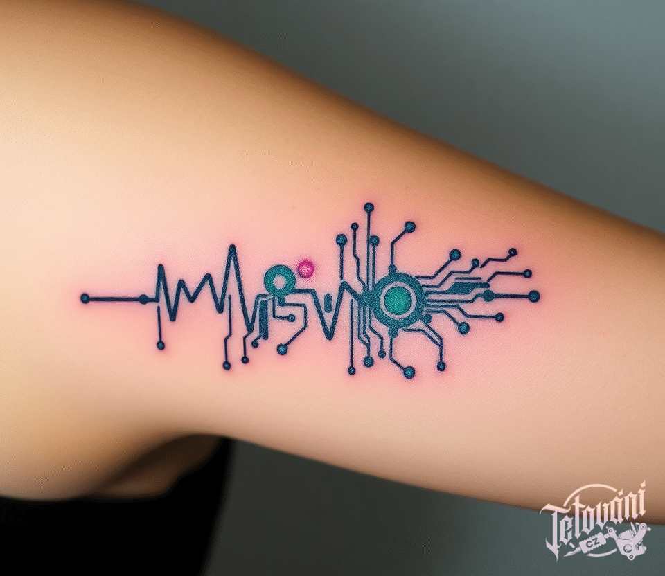 Tetování tep srdce a tvary na paži