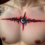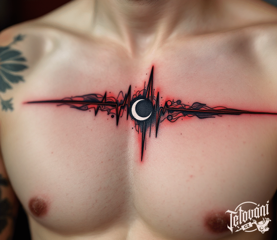 Tetování tep srdce, měsíc, ekg na hrudník