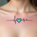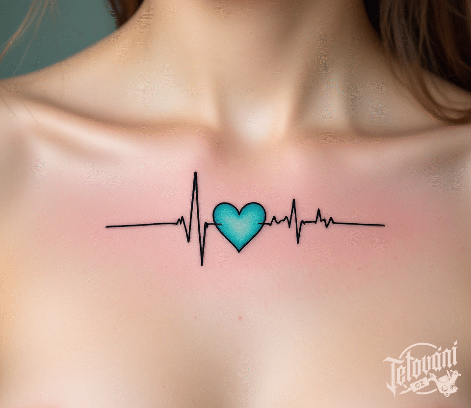 Tetování tep srdce, modré srdce, ekg na hrudník