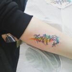Tetování tep srdce, psí tlapka, nápisy, jména na předloktí