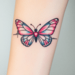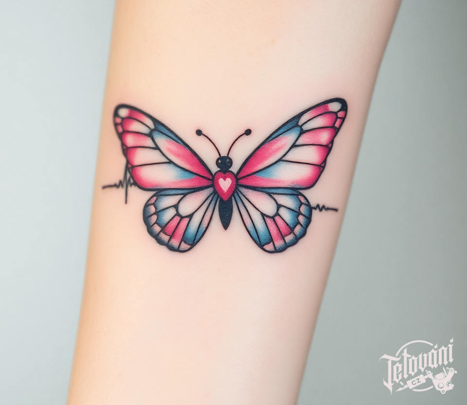 Tetování tep srdce, srdce a zvířata, motýl na předloktí