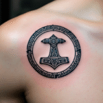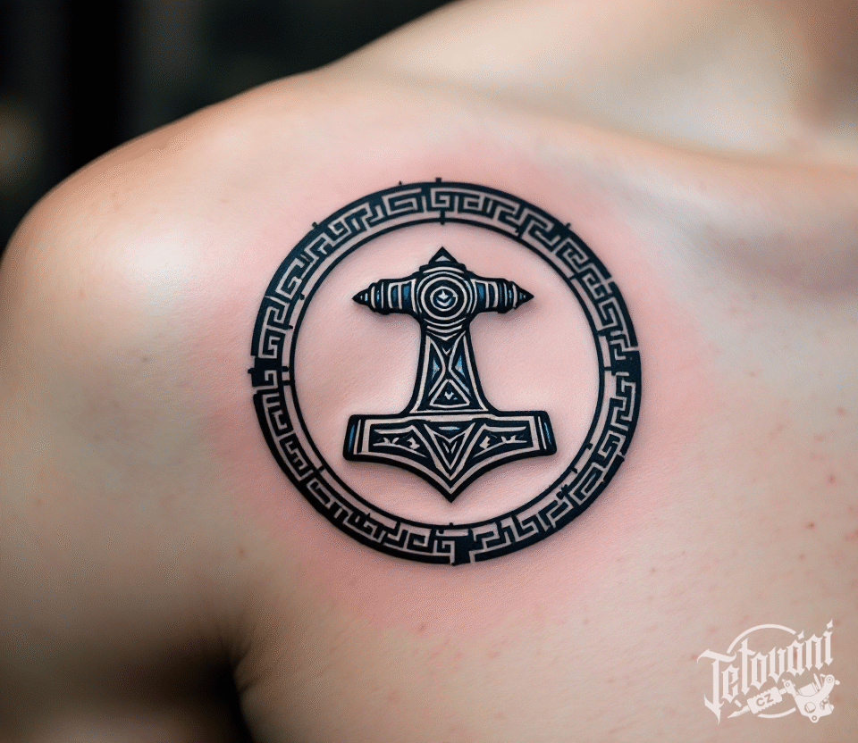 Tetování Thorovo kladivo pod klíční kostí