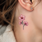 Tetování třešňový květ na krku