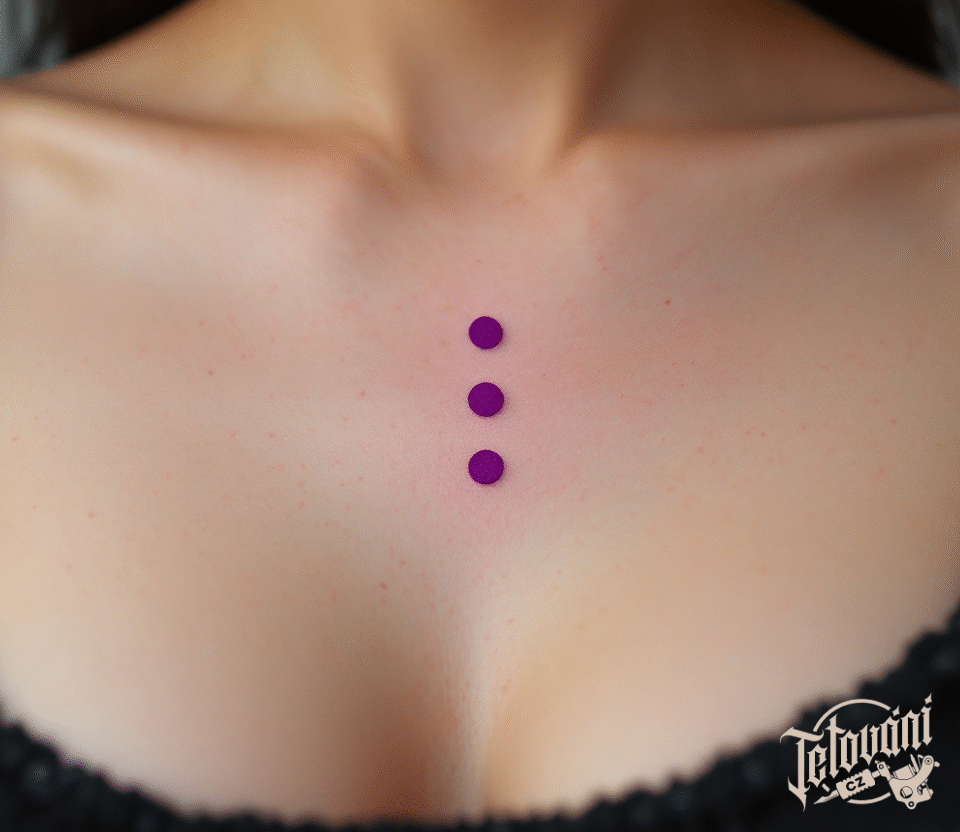 Tetování tři fialové tečky na hrudníku