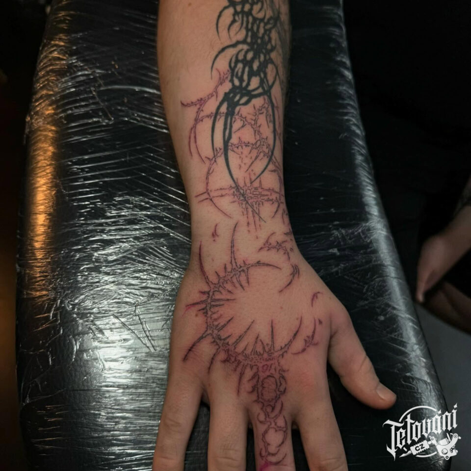 Tetování tribal ornamenty na hřbet ruky