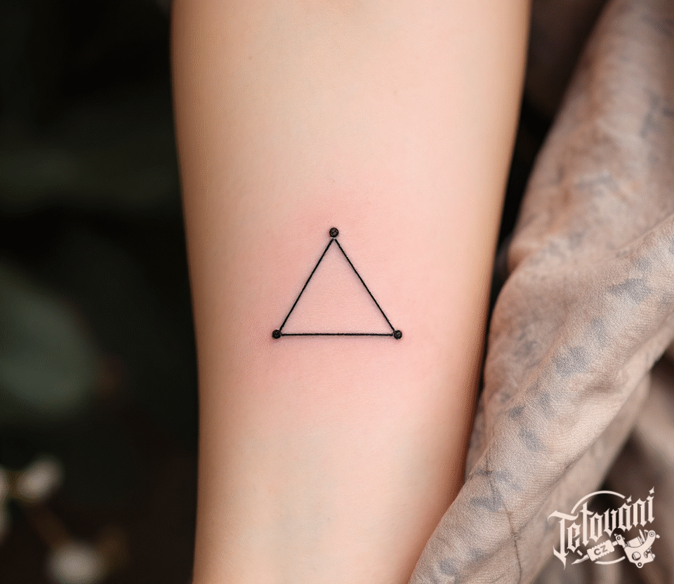Tetování tvar, trojúhelník s třemi tečkami na předloktí