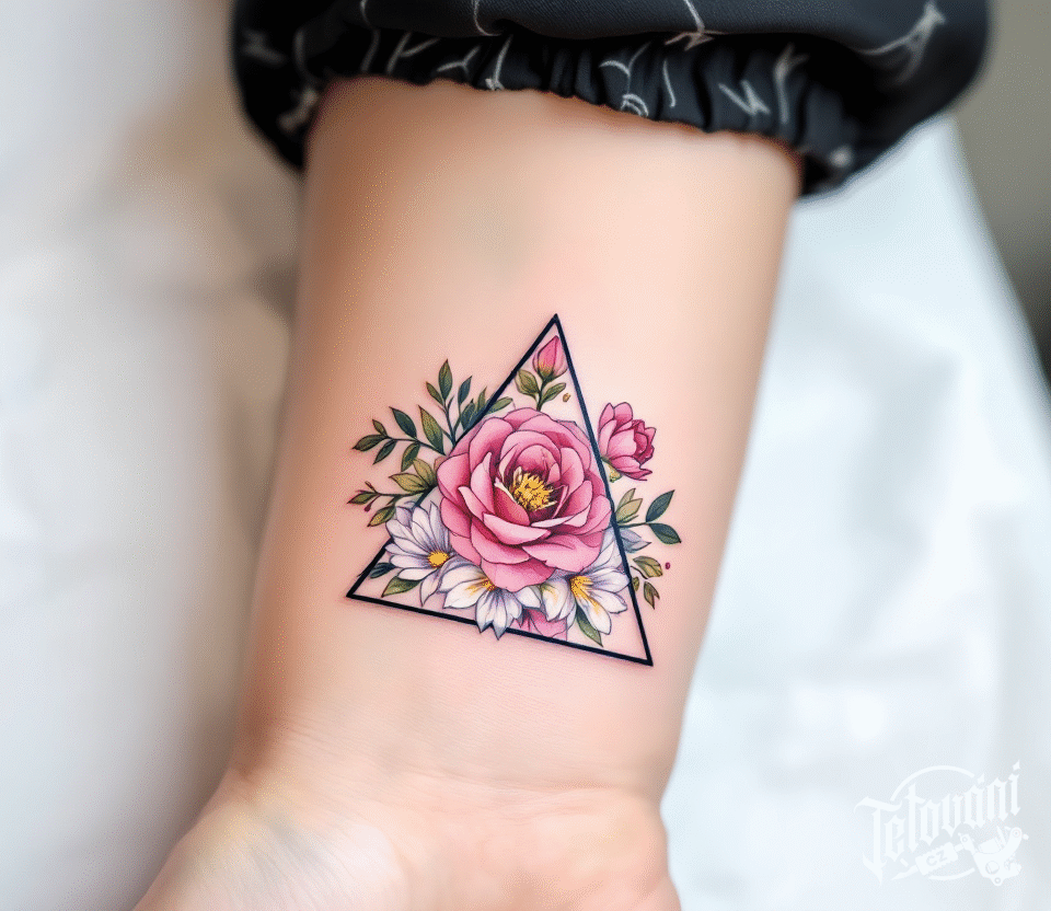 Tetování tvary, květiny v trojúhelníku na zápěstí
