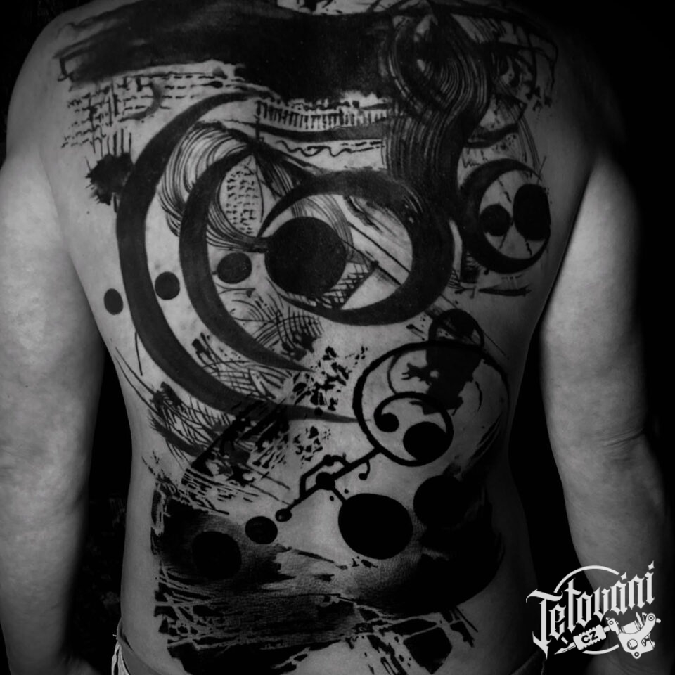 Tetování tvary, skvrny, měsíc na záda