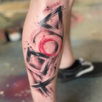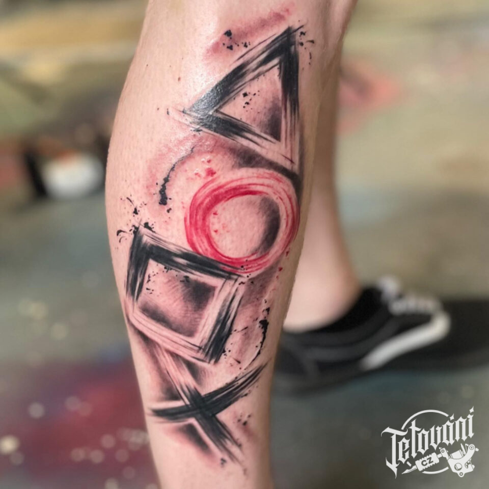 Tetování tvary, trojúhelník, kruh na holeň