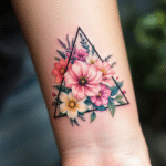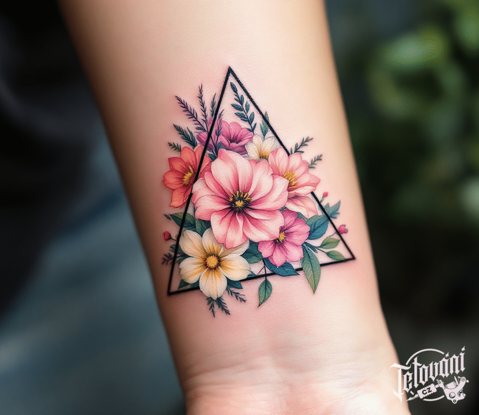 Tetování tvary, trojúhelník s květinami na zápěstí