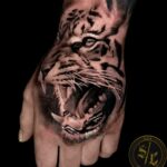 Tetování tygr na hřbetu ruky