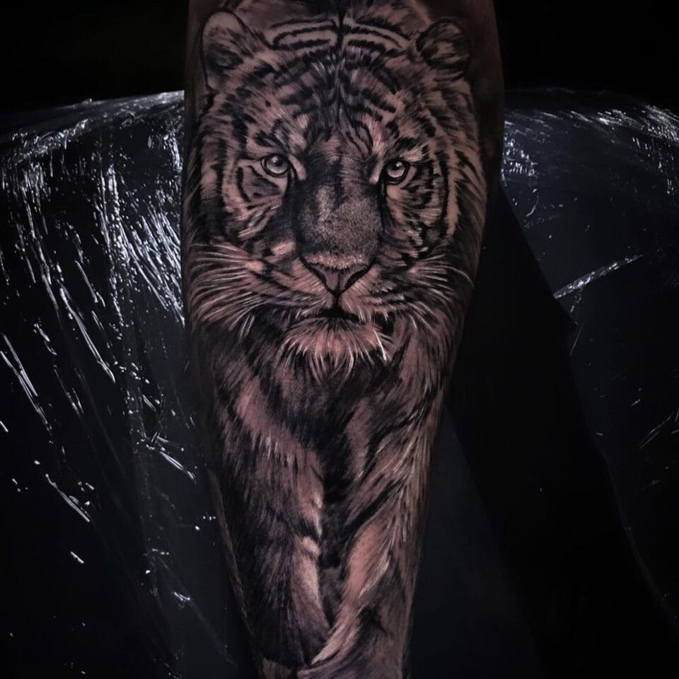 Tetování tygr, portrét na předloktí